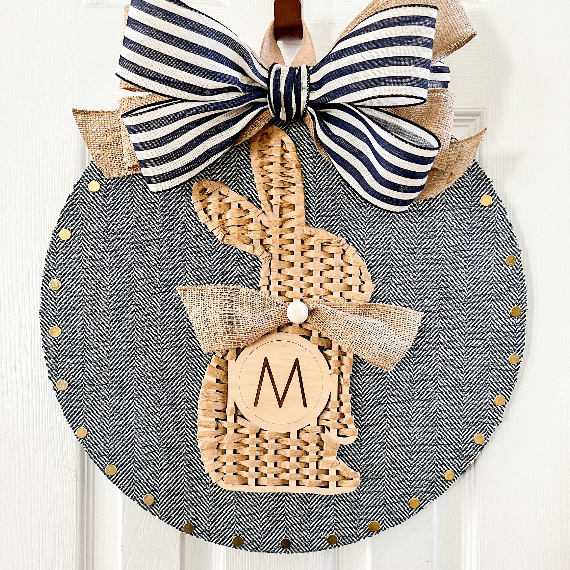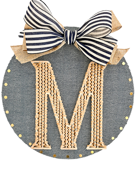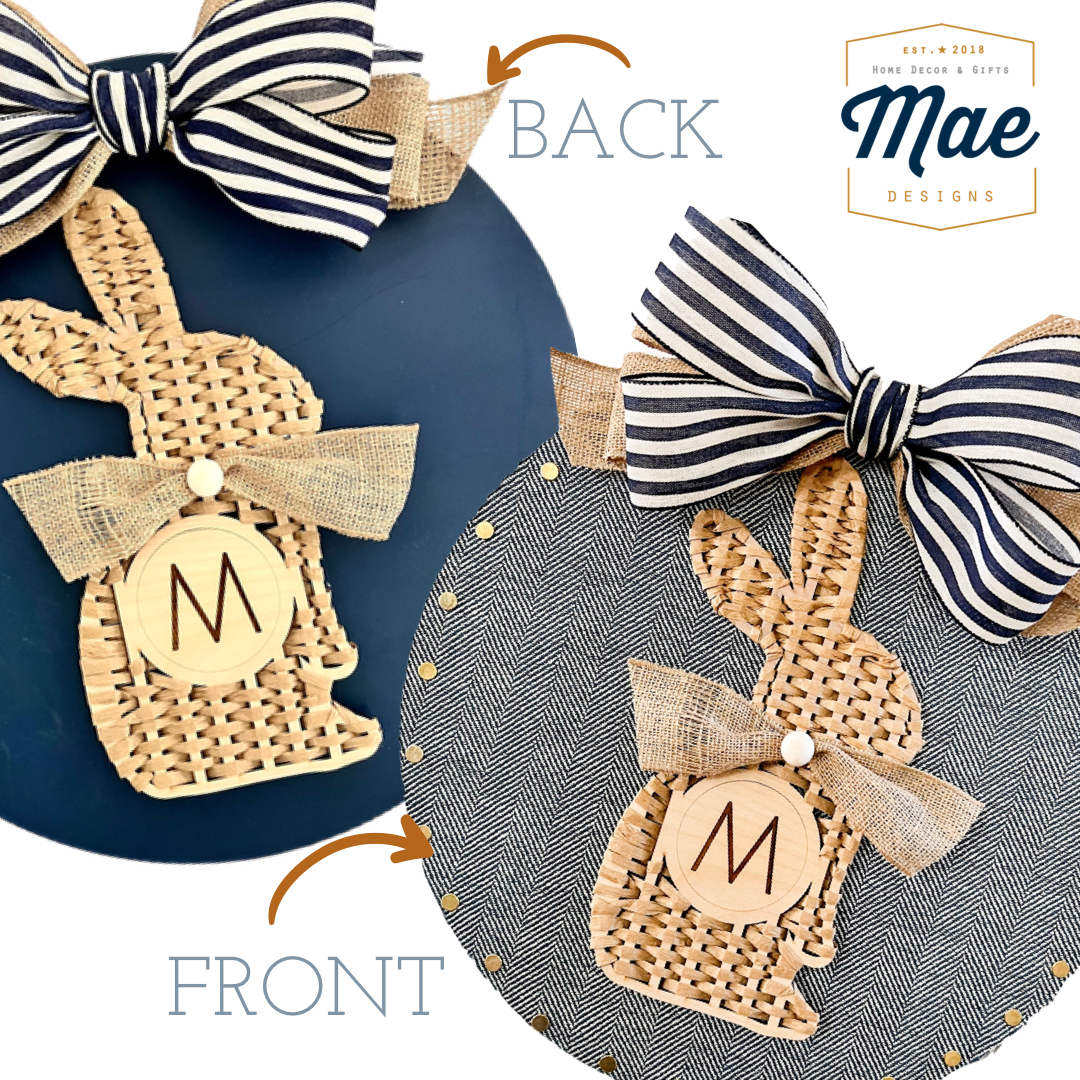 Double sided round sign with interchangeable seasonal designs and removable bow. You can flip and use the upholstered side or the painted solid side. Each base will have a secured magnet neodymium discs to help with changing out the designs for each season.