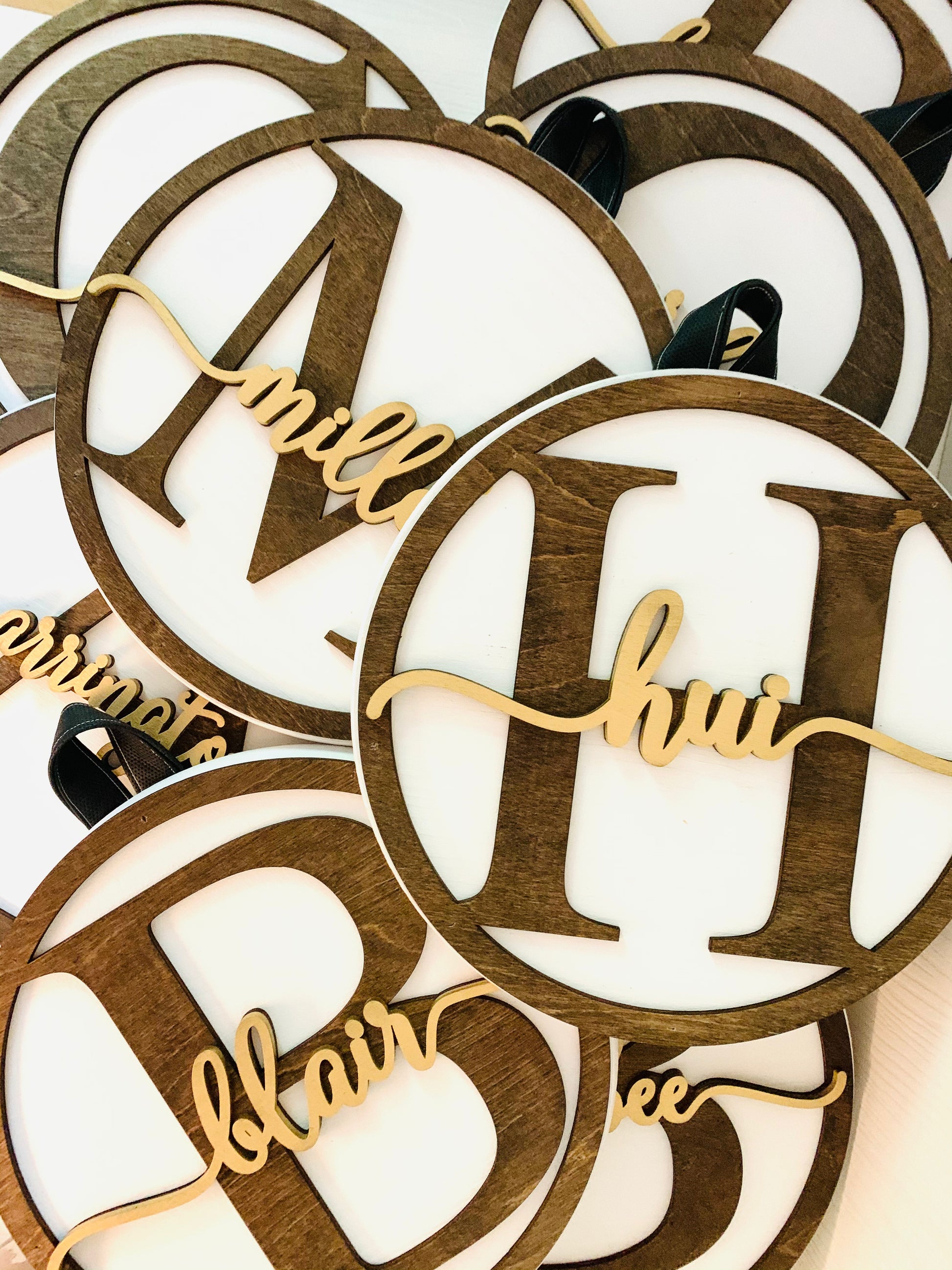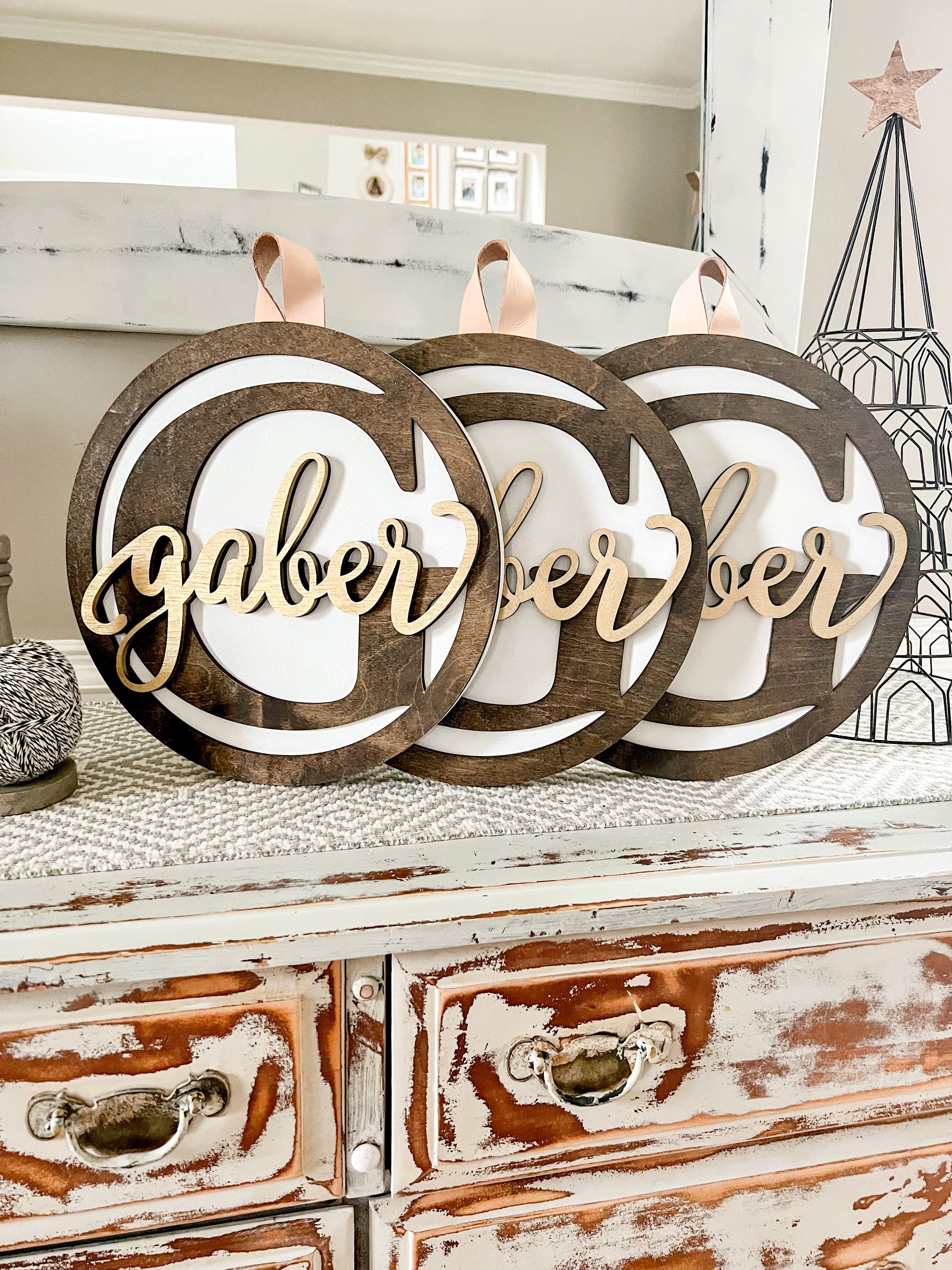Petite round monogrammed sign. Great wreath topper, shelf, or wall decor.