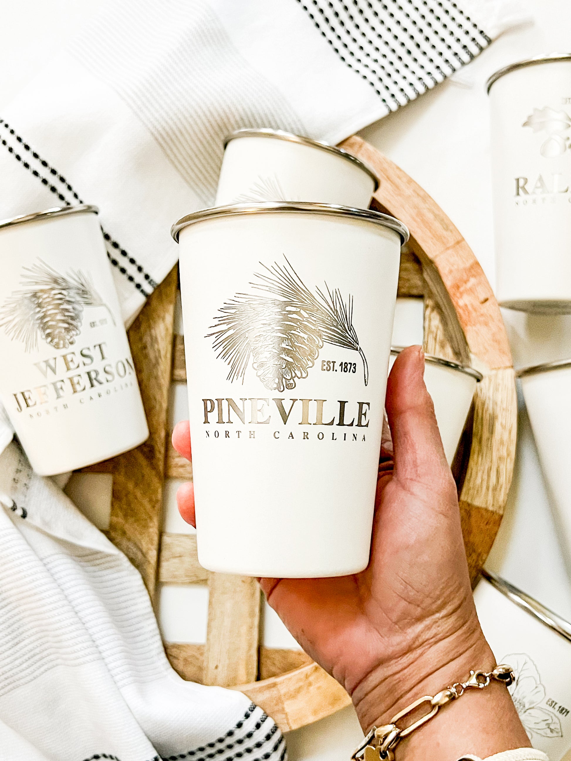 Pineville Engraved White Pint Cup